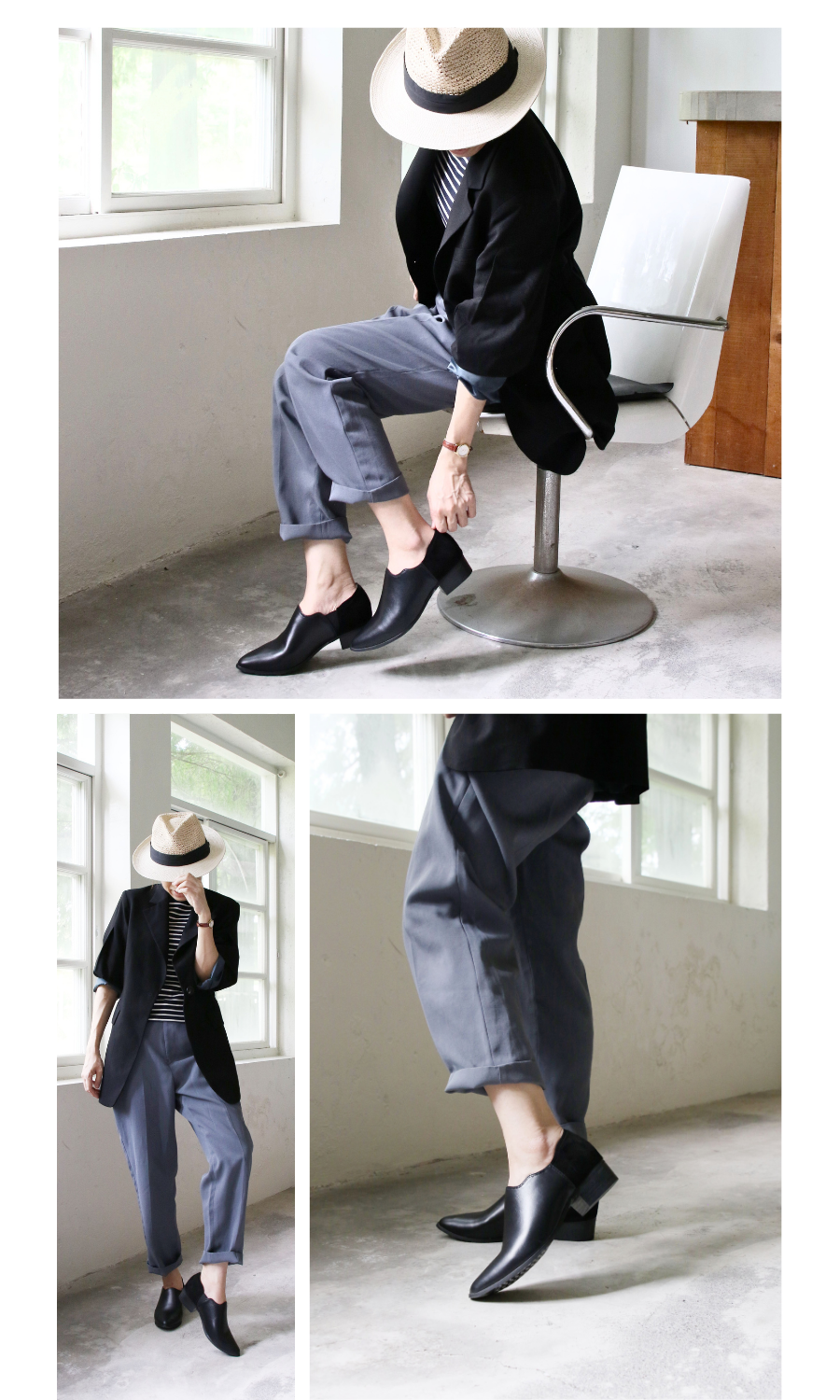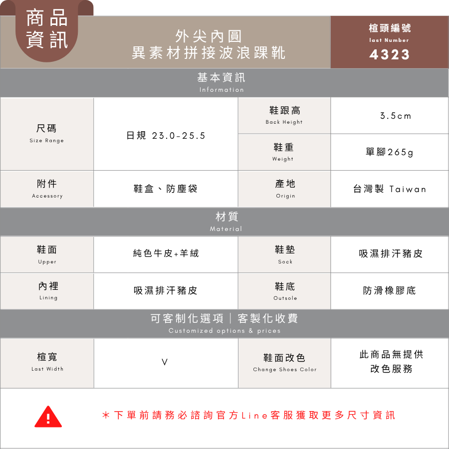 【接單手工製】外尖內圓異素材拼接波浪踝靴