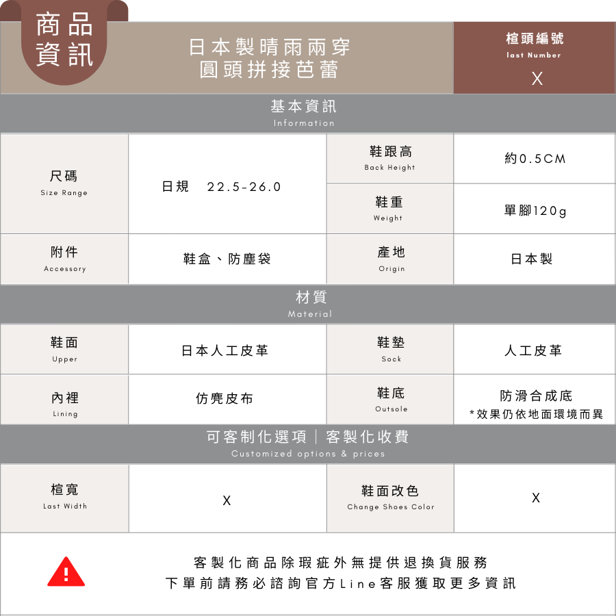 商品詳情 因工期較長,換貨又需重新等待40-60工作天 本檔僅提供七天鑑賞期退貨服務,無換貨服務,可接受再下單 【圓頭芭蕾團購】【黑白】世界系列_日本製晴雨兩穿_輕量圓頭拼接芭蕾舞鞋 TWD $3,680 TWD$ 3,500