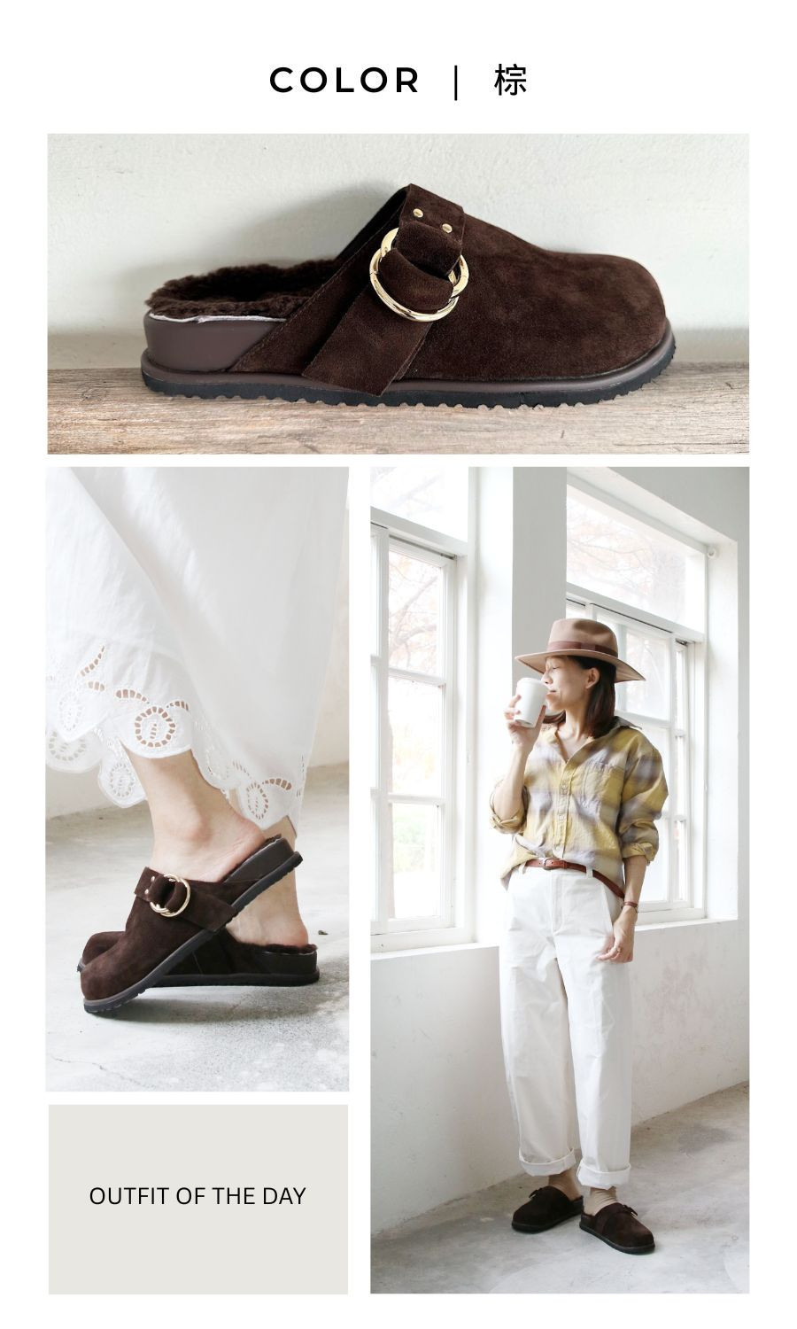 【快速到貨】世界系列_牛麂皮羊毛勃肯拖鞋