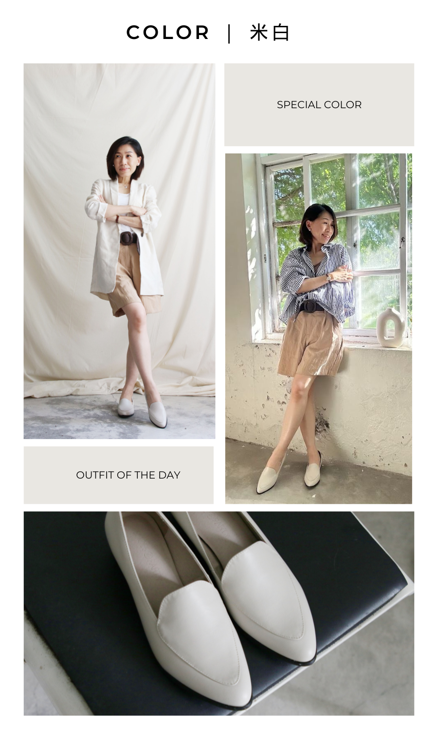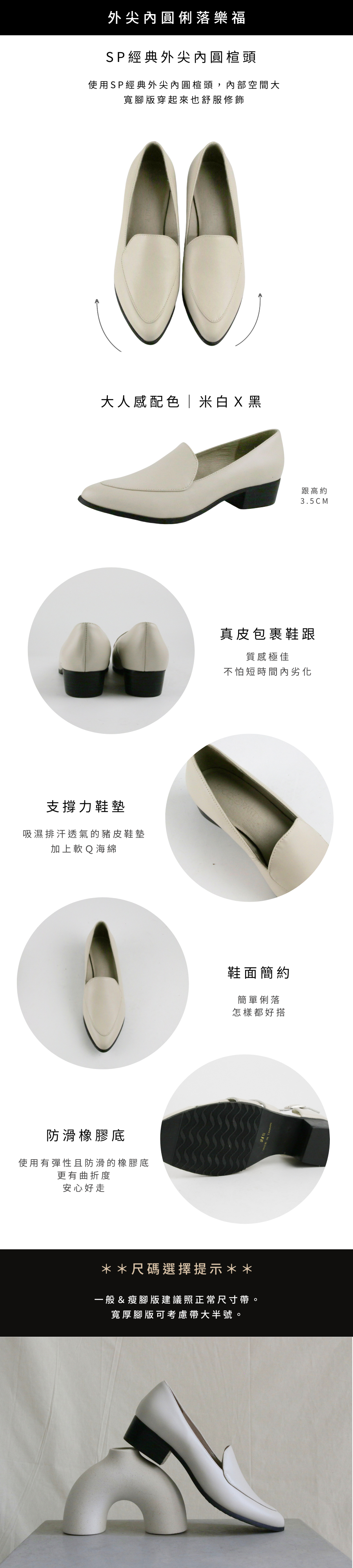 【現貨】【特殊色_米白】外尖內圓素面俐落樂福鞋