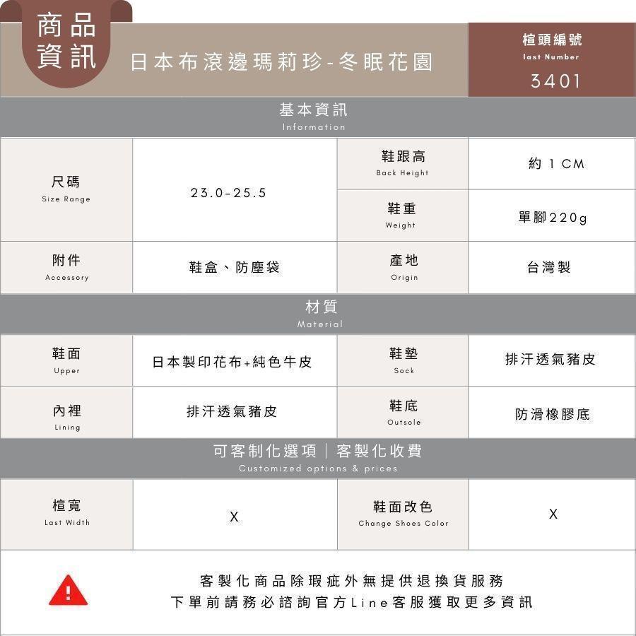 商品詳情 因日本花布數量有限,為保證布料不浪費 花布系列皆不提供雙腳對花服務 每雙成品的圖樣會不盡相同,這也是花布款的特色之一 若您對這部分有要求,請斟酌下單。 下方說明僅為瑪莉珍鞋款說明 顏色以商品圖為主 【跟著小小編一起訂】修飾腳版滾邊瑪莉珍 TWD $2,580 TWD $2,499