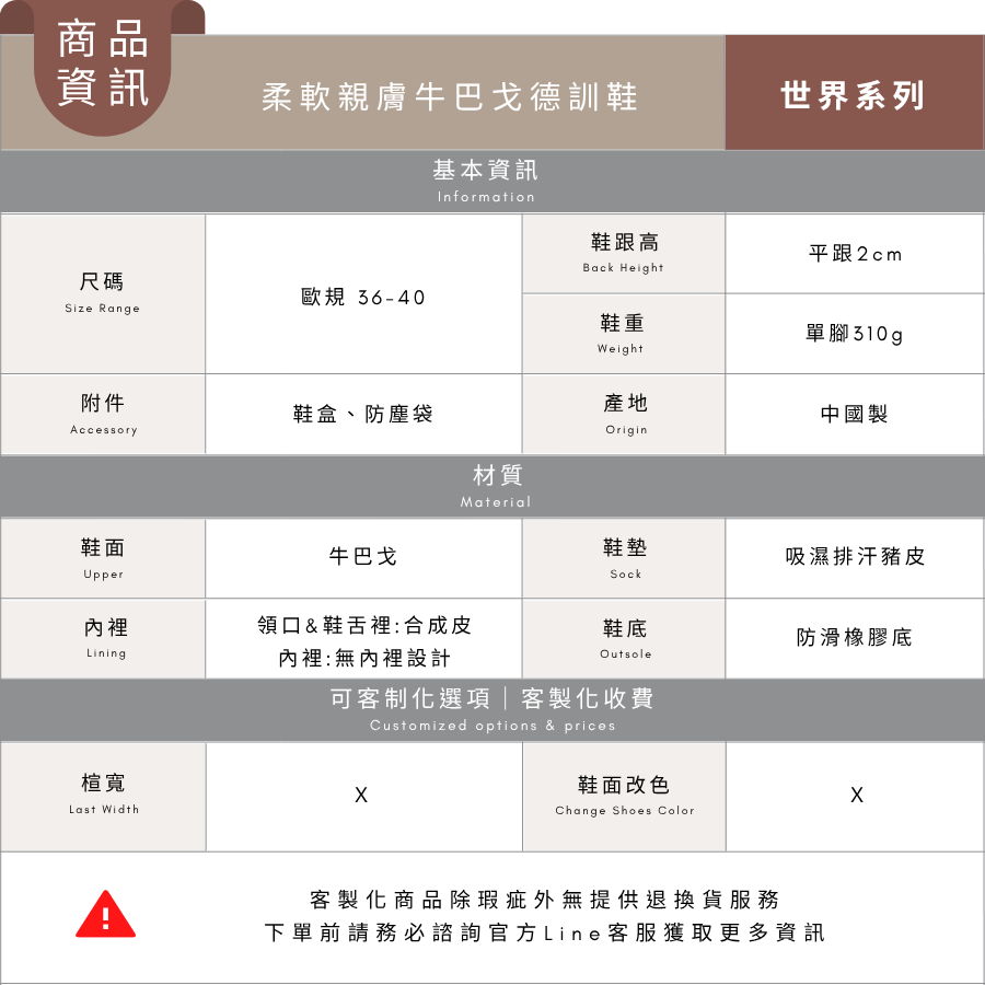 【新品優惠】世界系列柔軟親膚牛巴戈德訓鞋