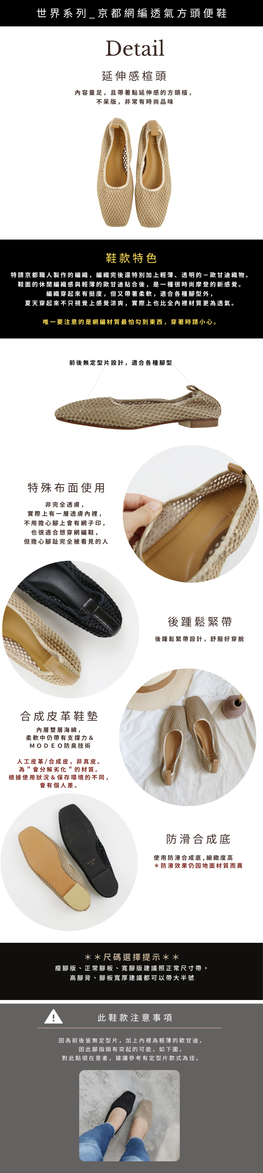 【世界系列】京都網編透氣方頭便鞋